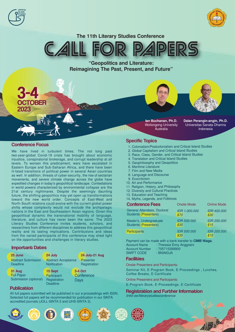 Literary Studies Conference (LSC) is the annual conference held in October by the Department of English Letters and the Graduate Program of English Studies, Universitas Sanata Dharma, Yogyakarta, Indonesia (in cooperation with Ateneo de Manila University, the Philippines). The topics covered in this conference include issues in language, literature, and culture.