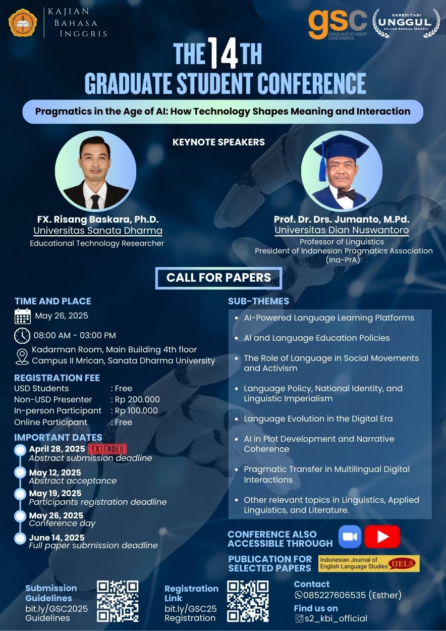 The English Language Education Study Program of Sanata Dharma University is thrilled to announce the 11th Undergraduate Conference on “Triumph Tapestry: Empowering Learning, Tailored Teaching with Tech Brilliance.”